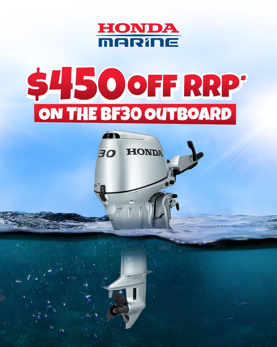 - The following amounts are applied as a discount to the RRP on all Mid-HP Honda Outboard models as follows: